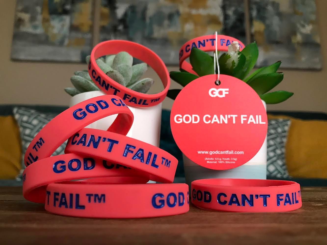 Moved by the struggles of close friends facing life’s challenges, Montrell was inspired to write a song titled God Can’t Fail. In 2006, he released his first album, with the song as its lead track. The album’s success brought attention to the phrase, sparking the creation of the first God Can’t Fail wristbands. Initially available in just two colors—clear with black lettering and clear with red lettering—these wristbands quickly grew in popularity. Today, they come in over 30 vibrant color combinations.